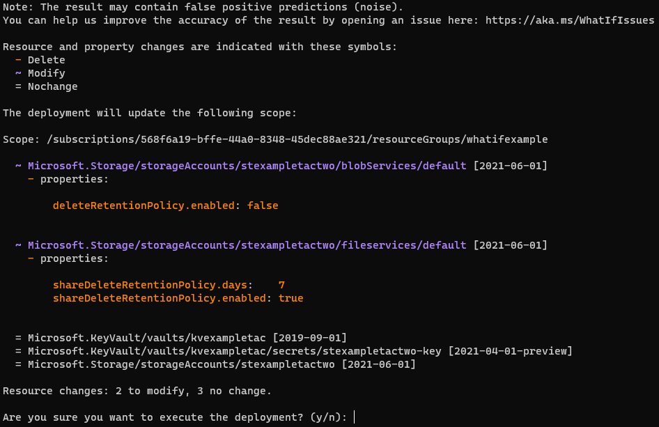 At first it may seem that the tool is broken because in the output the changes are not in the keyvault but in the storage account. There’s an explanation for this.