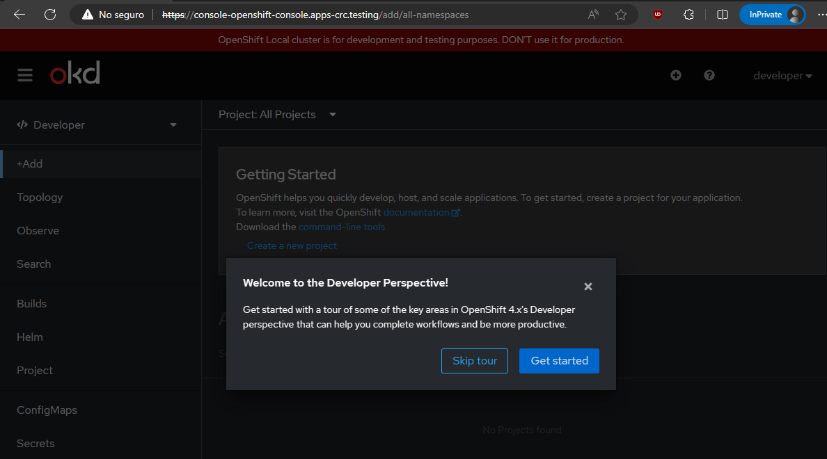 Openshift Local is the free edition for developers of Red Hat’s container platform. It provides a single-node Openshift cluster for testing.